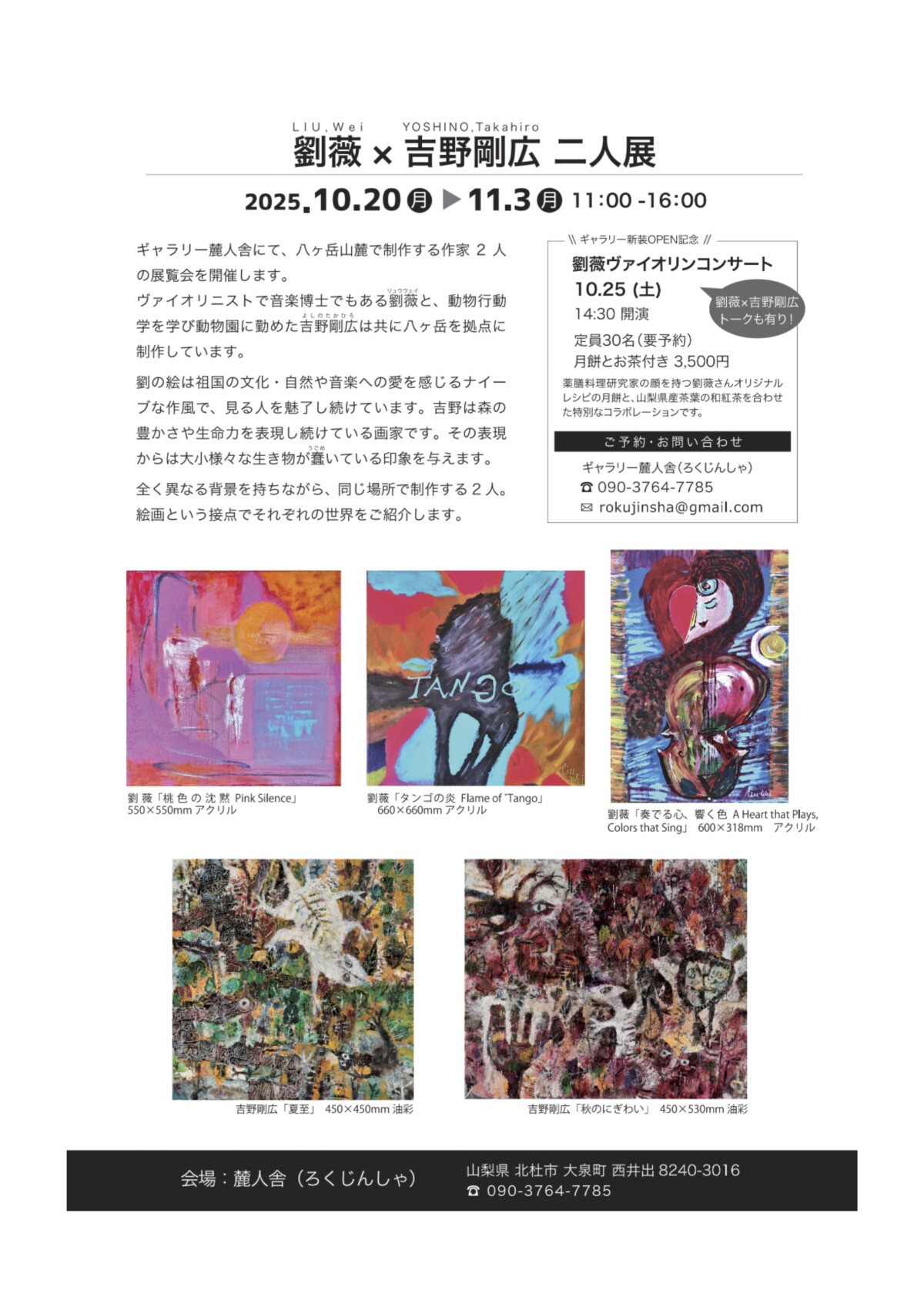 10月20日〜11月3日 【劉薇×吉野剛広 二人展】・10月25日14:30 劉薇ヴァイオリンコンサート