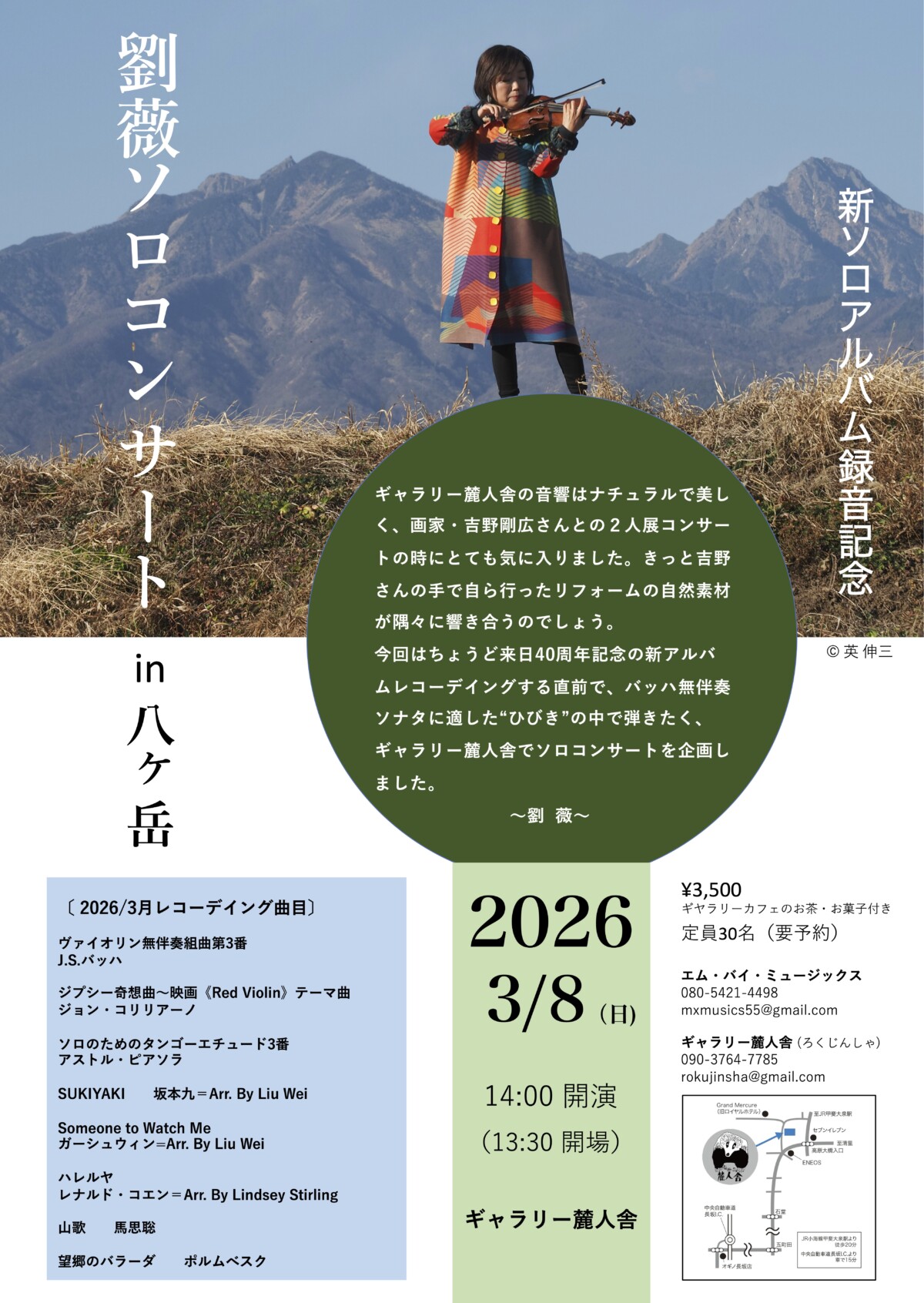 3月8日 劉薇 ソロコンサート in 八ヶ岳